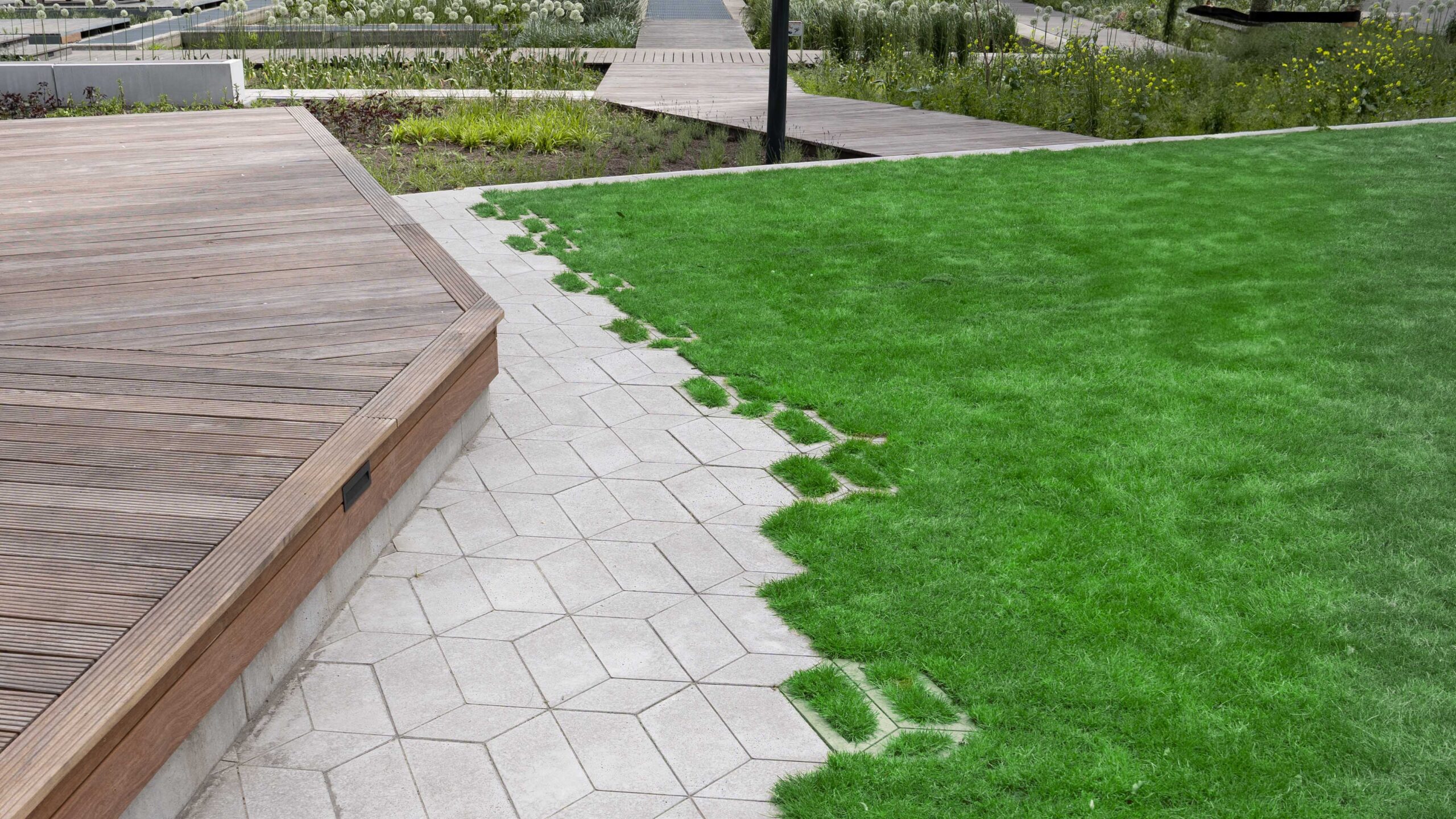 onze eerste 76% circulaire en 37,7% waterdoorlatende gras tegel.