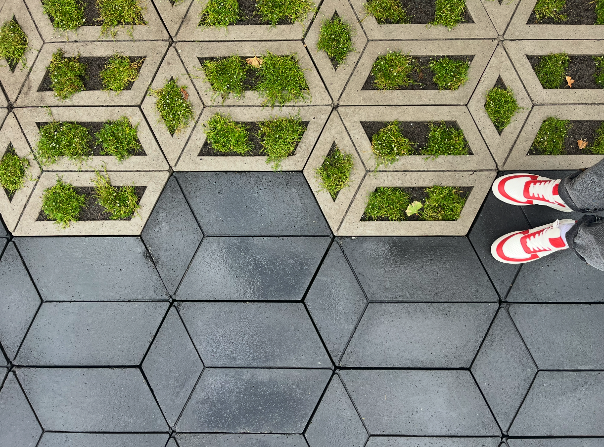 We hebben em, de ‘ParkWae’! De eerste circulaire waterdoorlatende tegel!