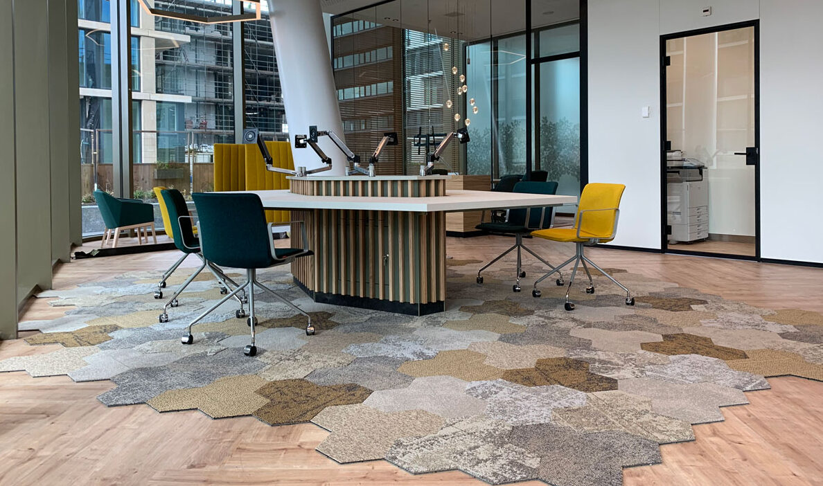 Onze unieke modulaire kleden en flooring met geometrische vormen zijn gemaakt van